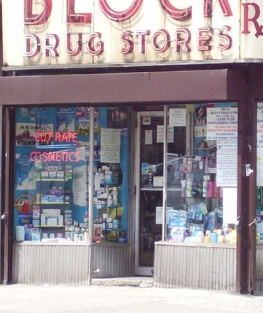 Kaca pada apotek biasanya dilapisi kaca clear & kaca buram serta logo dari apotek.