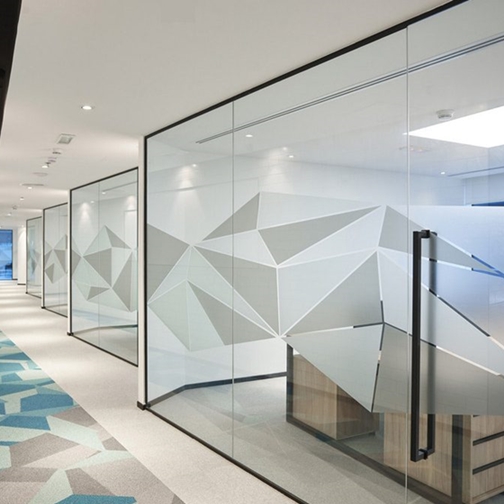 Kantor terdiri dari beragam ruangan yang biasanya menggunakan stiker kaca sebagai penyekat.